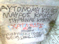 Σε αντίθεση με τα συνθήματα του νεοταξικού μίσους , γράψαμε συνθήματα που καλούν σε πάλη και αλληλεγγύη των λαών ενάντια στη νέα τάξη , μια πάλη που και εδώ στην Κρήτη και παντού , κανένας μηχανισμός καταστολής της νέας τάξης , αστυνομίες , δικαστήρια παρακρατικές συμμορίες της νέας τάξης δεν πρόκειται να σταματήσει.