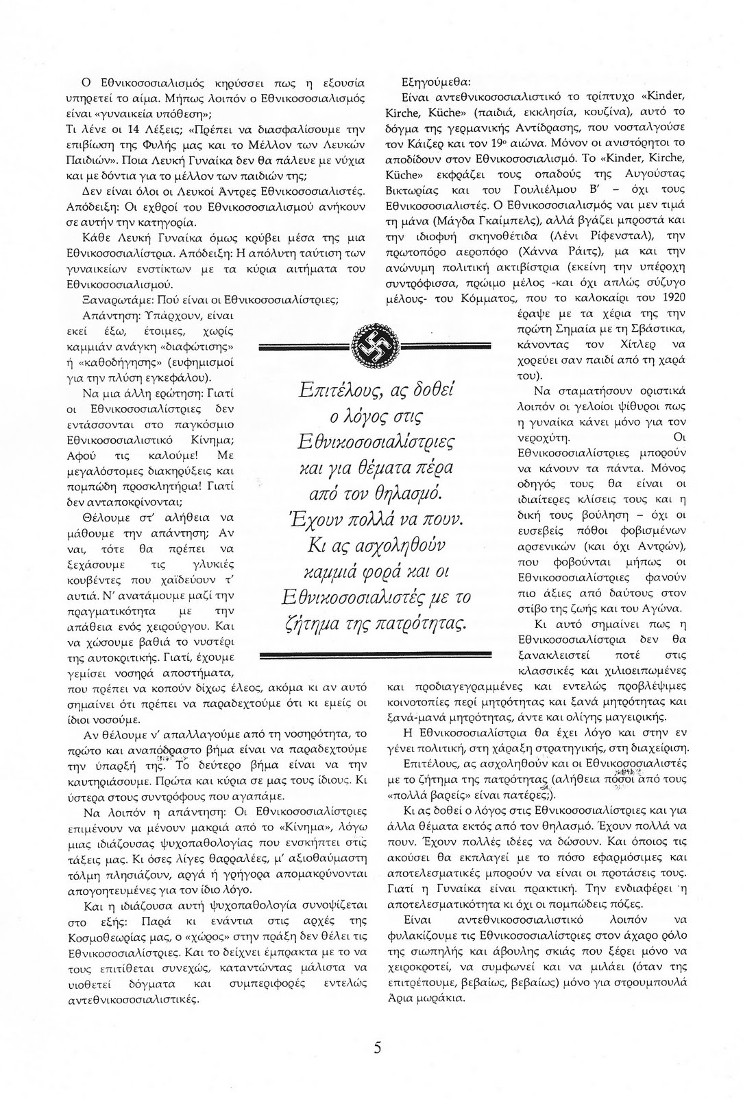 Πάνω από όλα σήμερα οι Εθνικιστές και οι Εθνικοσοσιαλιστές οφείλουν να είναι πραγματικοί Αντιεξουσιαστές και Αντικρατιστές (ενάντια στην εξουσία της σιωνοκρατούμενης εξουσίας και στο κράτος του Γιωργάκη και του Κωστάκη) αν πραγματικά ξέρουν και ποιος είναι ο εχθρός και που είναι οι κατοχικές δυνάμεις και ποιοι είναι οι ίδιοι.