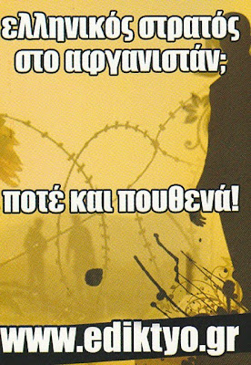 Για τους 'Ελληνες Εθνικοσοσιαλιστές η ελληνική στρατιωτική μονάδα στο Αφγανιστάν είναι δύναμη κατοχής και πολύτιμη εφεδρεία του Αμερικανοσιωνιστικού στρατιωτικού σκέλους του ΝΑΤΟ.