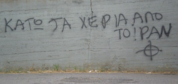 Η δεύτερη αναφορά μας έχει να κάνει με ένα εξαιρετικό αυτοκόλλητο από τους Αυτόνομους Εθνικιστές του «Δικτύου» (και για το οποίο τους αξίζουν συγχαρητήρια) με σαφές και ξεκάθαρο μήνυμα ενάντια στην δύναμη κατοχής του Ελληνικού στρατού στην περιοχή του Αφγανιστάν το οποίο και παραθέτουμε στο ιστολόγιο μας.