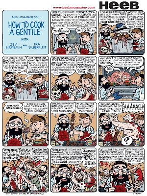 Jewish "humour" Anno 2009: "How to cook a Gentile". Comic strip taken from the Jewish homepage of Heeb Magazine, issue No15, 2009 (called "The Goy Issue").