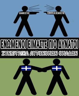 Βέβαια υπάρχουν και κάποιοι άλλοι … που επιμένουν να λαμβάνουν μέρος στις αστικές εκλογές. Είναι αυτοί που πιστεύουν ότι το εθνικιστικό κίνημα της Ελλάδος δικαιώθηκε επειδή η «Χρυσή Αυγή» κατάφερε, μέσα σε έναν αληθινό ορυμαγδό κοινωνικής και οικονομικής καταστροφής, να βγάλει έναν δημοτικό σύμβουλο στην Αθήνα. Τους δίνουμε «συγχαρητήρια» ...