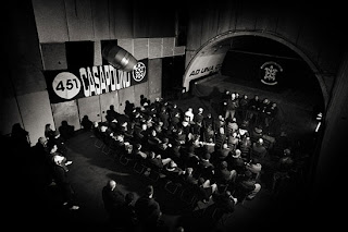 Ο χώρος είναι ασφυκτικά γεμάτος από νέους και νέες. Πρόσωπα λαμπερά γεμάτα αυτοπεποίθηση. Πλήρης η αίσθηση της πειθαρχίας στον χώρο, μια πειθαρχία που δεν είναι αποτέλεσμα εξαναγκασμού αλλά επειδή το απαιτεί το νόημα των ιδεών μας ο χώρος και η περίσταση.