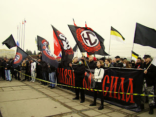 Μαύρες οι σημαίες όπως το χρώμα των ρούχων που φοράμε, δείγμα της εσωτερικής μας δύναμης αλλά και της αποφασιστικότητας που χαρακτηρίζει εμάς τους Φασίστες και Εθνικοσοσιαλιστές.