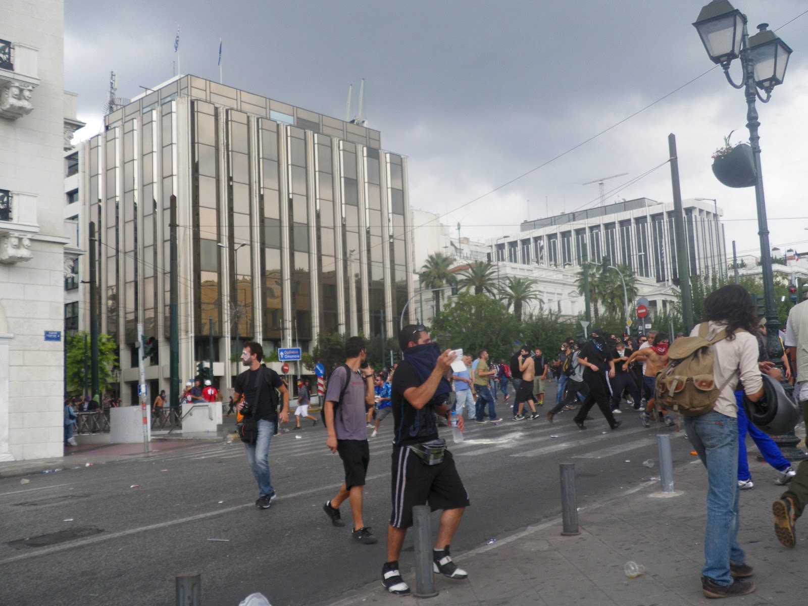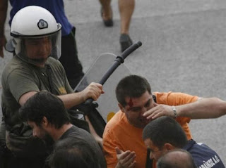 Καθώς φαίνεται, ο ταξικός αγώνας τελειώνει στο πρώτο μπλοκ της αστυνομίας! Ο κόσμος αυτή τη φορά δεν τους χαρίστηκε. Τους φώναζε «προδότες» και τους γιουχάρισε μέχρι που χάθηκαν από τα μάτια και άφησαν το κενό που οδήγησε στον αποκλεισμό της πλατείας και τον εξοστρακισμό των διαδηλωτών στους γύρω, από την πλατεία, δρόμους. Το ωραίο, βέβαια, ήταν ότι δεν έφευγαν, αλλά επέστρεφαν στην πλατεία.