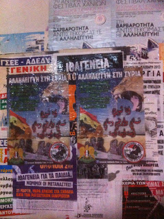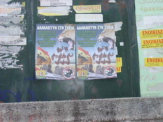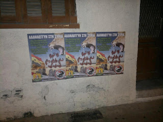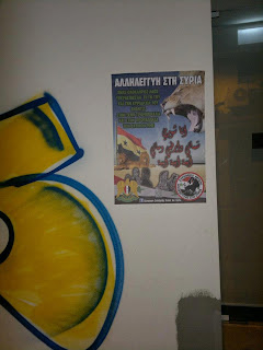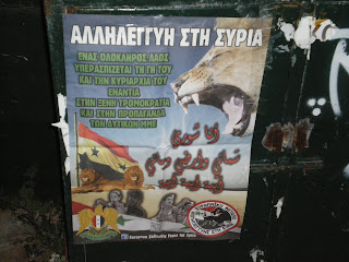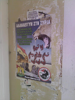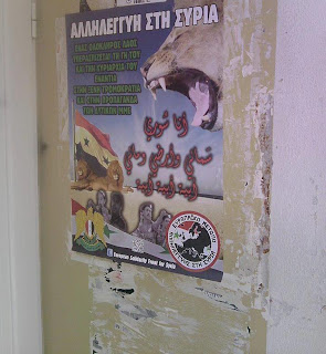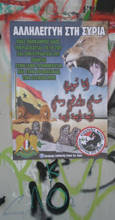 Άνθρωποι και ομάδες από κάθε περιοχή, ευαισθητοποιούνται για το τι συμβαίνει στην Συρία και έρχονται συνεχώς μαζί μας. Άλλοι βγήκαν με σημαίες στις πλατείες, άλλοι κολλούν αφίσες και αυτοκόλλητα, άλλοι μοιράζουν έντυπα, άλλοι κάνουν ανοικτές συναντήσεις σε σχολεία ...