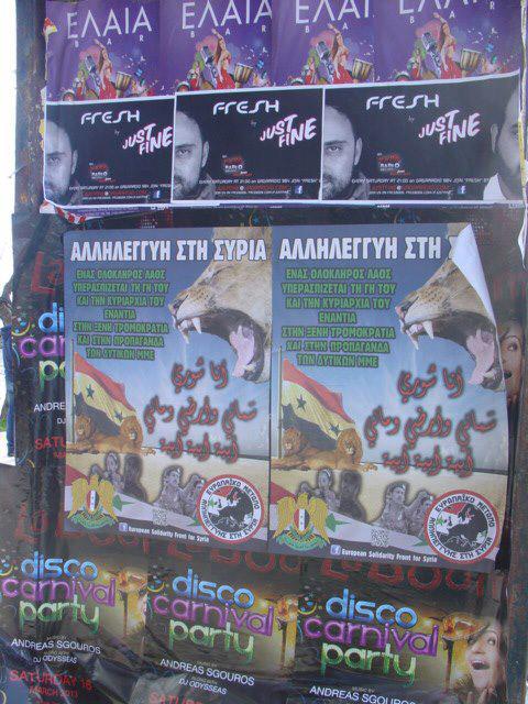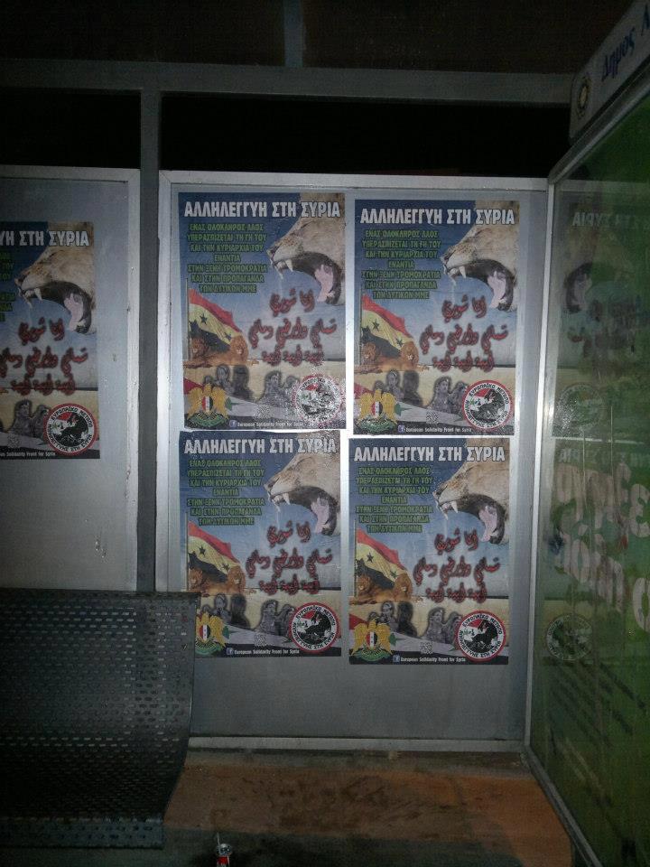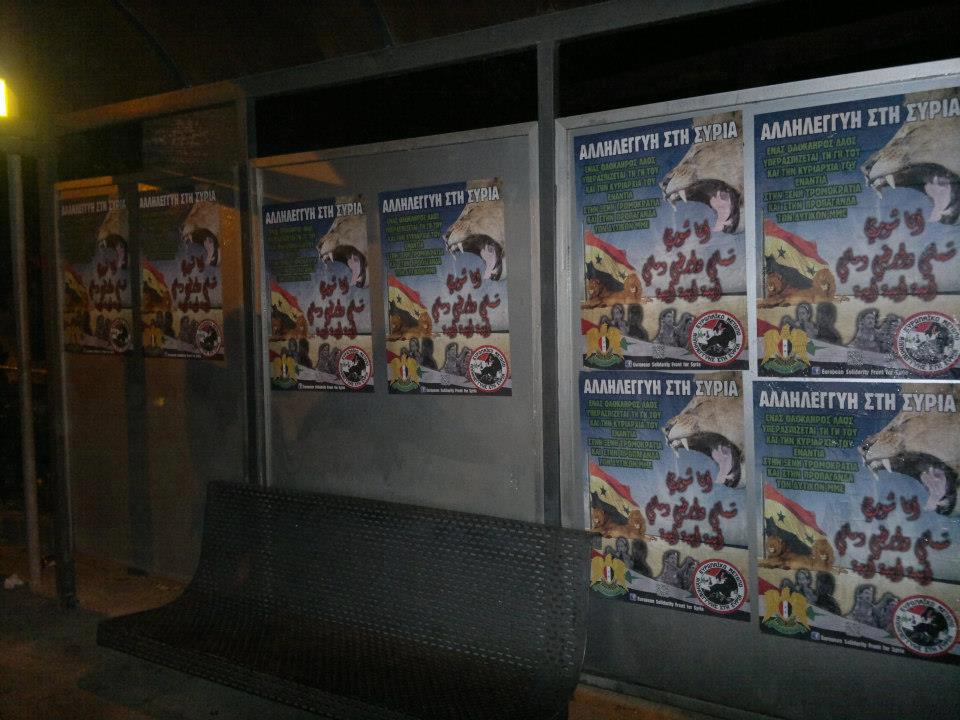 Οι συμπατριώτες μας που στηρίζουν το «Μέτωπο Αλληλεγγύης για την Συρία» πραγματοποίησαν ευρείας κλίμακας αφισοκόλληση σε 11 πόλεις της χώρας!