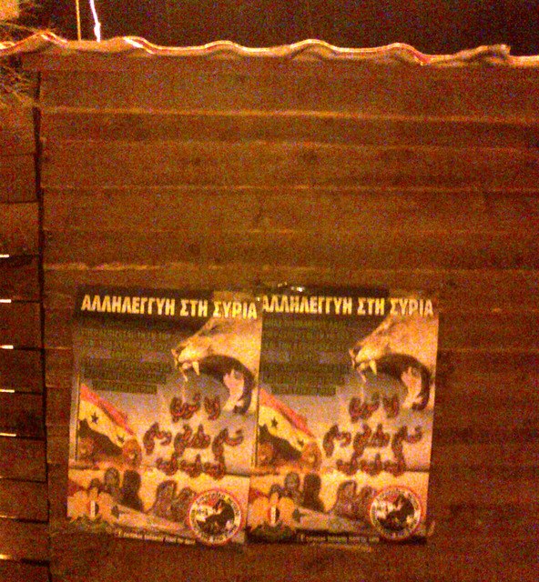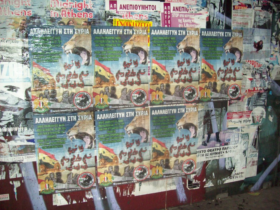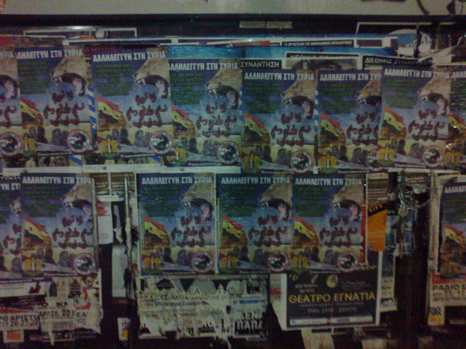 Χθες μέσα σε μία μέρα, γέμισαν πολλές πόλεις της Ελλάδας από την κοινή αφίσα που βγήκε σε όλες τις γλώσσες. Και όλα αυτά είναι μόνο η αρχή. Αγωνιζόμαστε για τη Συρία, την ειρήνη και την εθνική αλληλεγγύη. Ο αγώνας τους είναι και δικός μας.