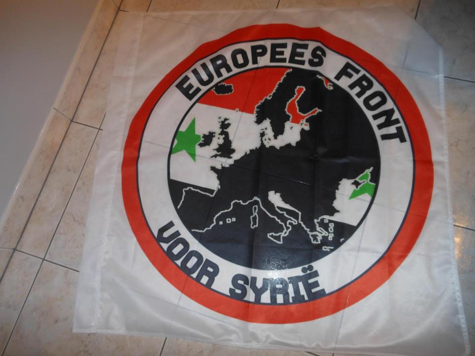 Συναγωνιστές από το Βέλγιο κατασκεύασαν σημαίες με το σύμβολο της πανευρωπαϊκής κίνησης «Ευρωπαϊκό Μετώπο Αλληλεγγύης στην Συρία»