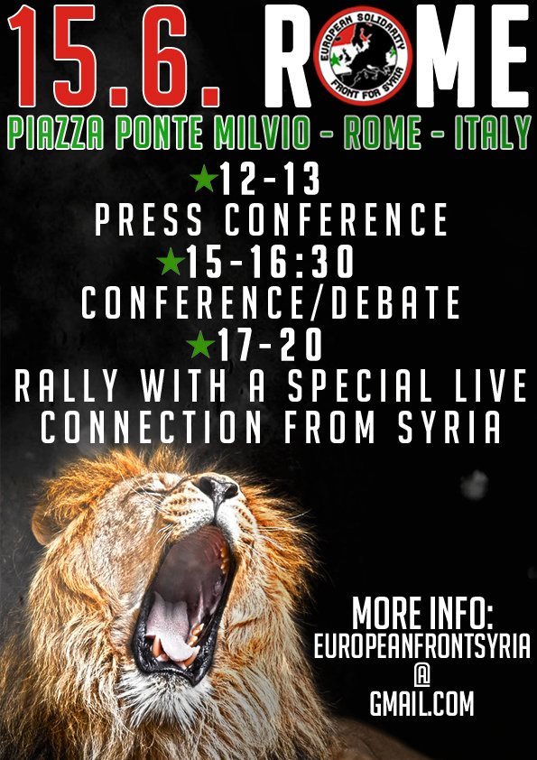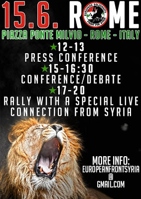 Λογαριασμός PAYPALγια την ενίσχυση του "Ευρωπαϊκού Μετώπου Αλληλεγγύης για την Συρία": IT 29 Z 36000 03200 0 CA004634823. Τα χρήματα θα διατεθούν σε δομές και κινήσεις ενημέρωσης με στόχο την όσο το δυνατόν καλύτερη οργάνωση της πανευρωπαϊκής πορείας στην Ρώμη.