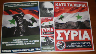 Παρέμβαση με πανό υποστήριξης του Assad και της Συρίας και ενημέρωση με φυλλάδια έγινε το πρωί της Παρασκευής από μέλη της «Εθνικής Δράσης Ηλείας» σε κεντρικό και πολυσύχναστο σημείο του Πύργου.