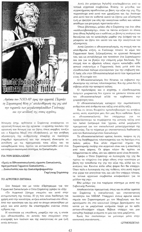 Δείγματα γραφής έχουν δοθεί πολλές φορές στο πρόσφατο παρελθόν και το αποτέλεσμα της ανάπτυξης της αστικής εθνικιστικής σκέψης - με εξαίρεση ελάχιστες κινήσεις και ομάδες - δείχνει να είναι χαμηλότερο των περιστάσεων. Άλλωστε ένας «εθνικιστικός» χώρος που απέδωσε σεβασμό στον μακαρίτη συντάκτη του «Στόχου» και επί χρόνια υπάλληλο της ΚΥΠ, στον ρασοφόρο φιλοσιωνιστή Χριστόδουλο και κολλητό φίλο του Βαβύλη ή παλαιότερα στον Χρύσανθο Δημητριάδη της ΕΠΕΝ καθώς και σήμερα στον «φαραώ» Νίκο Μιχαλολιάκο είναι όχι μόνο άξιος της μοίρας του αλλά και ένα πολιτικό σκιάχτρο χρήσιμο για την εξουσία. Η αυταπάτη είναι η αγαπημένη ασχολία των ακροδεξιών και των αστών Εθνικιστών που δεν διακρίνονται για τον ριζοσπαστικό τρόπο σκέψης τους. Είναι το προκάλυμμα πίσω από το οποίο σπεύδουν να κρυφτούν σε δείγμα ενός σύγχρονου πολιτικού στρουθοκαμηλισμού. Η δική τους οπτική είναι μια μίξη της πολιτικής κληρονομιάς του Κωλέττη και του Μαυροκορδάτου, πασπαλισμένη με ολίγο βασιλιά και φιλοχουντικό φετιχισμό ενώ στο τέλος καταναλώνουν κοινοβουλευτικό εθνικισμό τύπου νέας «Χρυσής Αυγής» δηλαδή ένα μπόλικο από όλα με ένα εύγεστο πολιτικό τίποτα.