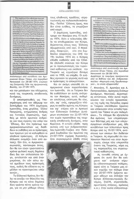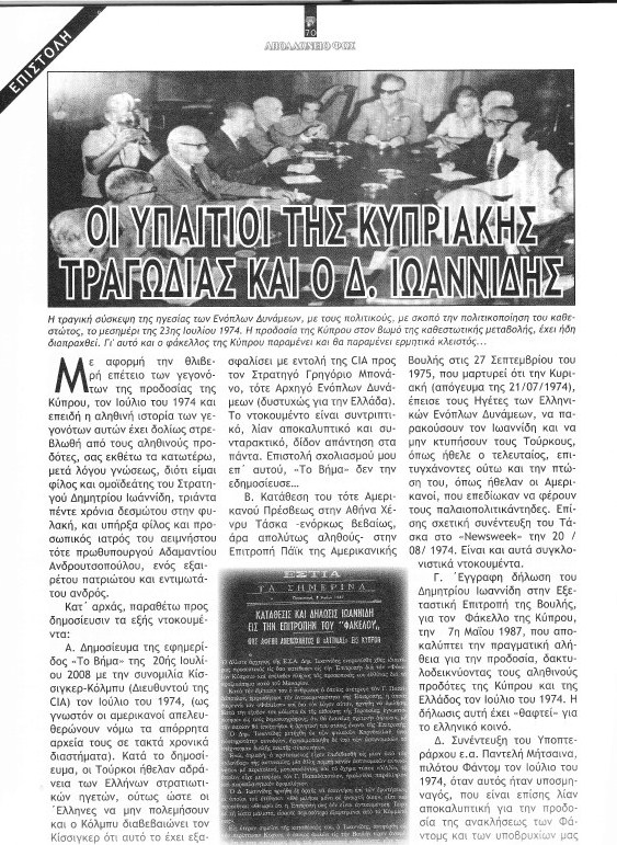ΑΠΟΚΛΕΙΣΤΙΚΟ: Η άγνωστη επιστολή του Δρ. Ανδρέα Σταθόπουλου στο περιοδικό "Απολλώνειο Φως" (09-10/2010 τεύχος 85) για τους υπαίτιους της Κυπριακής τραγωδίας και τον Ταξίαρχο Δημήτριο Ιωαννίδη (.pdf)