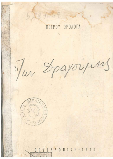 Το 1938 κυκλοφορεί στην Θεσσαλονίκη ένα ακόμη βιβλίο για τον Ίωνα Δραγούμη. Ο συγγραφέας είναι ο Πέτρος Ωρολογάς εκδότης και δημοσιογράφος με καταγωγή από την Κορυτσά, φανατικός εχθρός του Βενιζελισμού και μια από τις μεγαλύτερες μορφές της ελληνικής δημοσιογραφίας. Συμμετείχε στην εκδοτική ομάδα της εφημερίδας «Νέα Ευρώπη» ως αρθρογράφος, μια εφημερίδα από την Θεσσαλονίκη με εθνοκοινωνικό προσανατολισμό στην οποία και υπέγραφε με το ψευδώνυμο Πέτρος Φωτεινός ή Τριάστερος. Διώχθηκε από το μεταπολεμικό καθεστώς και καταδικάστηκε για την συνεισφορά του στην αντιδημοκρατική προπαγανδιστική μηχανή.