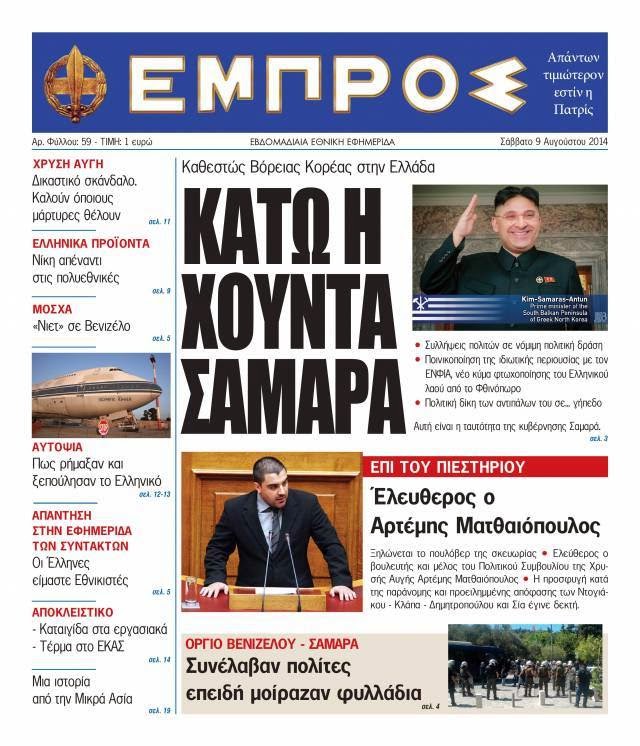 Μαζί στον χορό της παραπληροφόρησης και η ακροδεξιά εφημερίδα "Εμπρός" που στηρίζει τον Μιχαλολιάκο αναπαράγει φυσικά τα ίδια ακριβώς τσιτάτα με τους Αμερικανούς και τους Σιωνιστές σχετικά με το καθεστώς της Βόρειας Κορέας ...