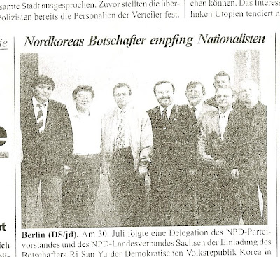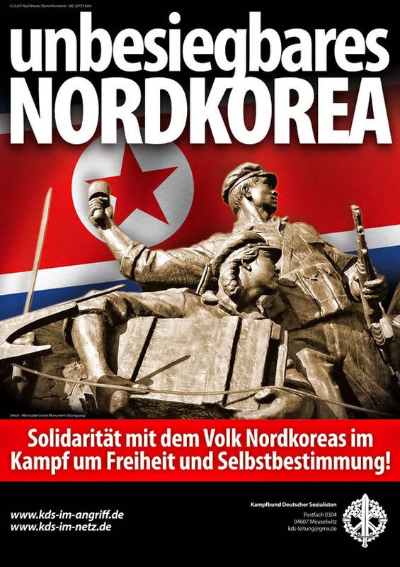 Σε παλαιότερο άρθρο υπήρξε αναφορά στην σχέση του «Στρασσερικού» KDSμε την Βόρεια Κορέα - σύνδεσμος εδώ - ενώ να σημειωθεί ότι το ’98 μέλη του NPD από την Σαξονία ενίσχυσαν τους δεσμούς μεταξύ Γερμανών συναγωνιστών και Βορειοκορεατών. Σήμερα η αντιιμπεριαλιστική πλατφόρμα (AIP) πρωτοστατεί στην υπεράσπιση της χώρας αυτής, και εκπρόσωποι της παρευρέθηκαν σε εκδηλώσεις υπέρ του Βορεοκορεάτικου καθεστώτος το 2012. Υπάρχουν πολλοί συναγωνιστές μας που διατηρούν επαφές με ανθρώπους του καθεστώτος αλλά δεν προβάλλονται για ευνόητους λόγους. Στην Σουηδία Εθνικοσοσιαλιστές (N.R.M.) το 2013 προχώρησαν σε παρέμβαση ζητώντας από την ηγεσία της ασιατικής χώρας να καταστρέψει το Τελ Αβίβ και την Νέα Υόρκη με πυρηνικά όπλα για να εξαφανιστεί το Σιωνιστικό καρκίνωμα!