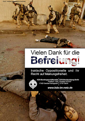 Για τις επιθέσεις της 11ης Σεπτεμβρίου 2001, από την Κολωνία το μέλος της KDS Axel Reitz επισήμανε στην έκδοση «αντεπίθεση»: «Ο τρόμος επέστρεψε στη χώρα , από την οποία είχε αρχίσει το ταξίδι του : Ο διάβολος είναι η Αμερική !»