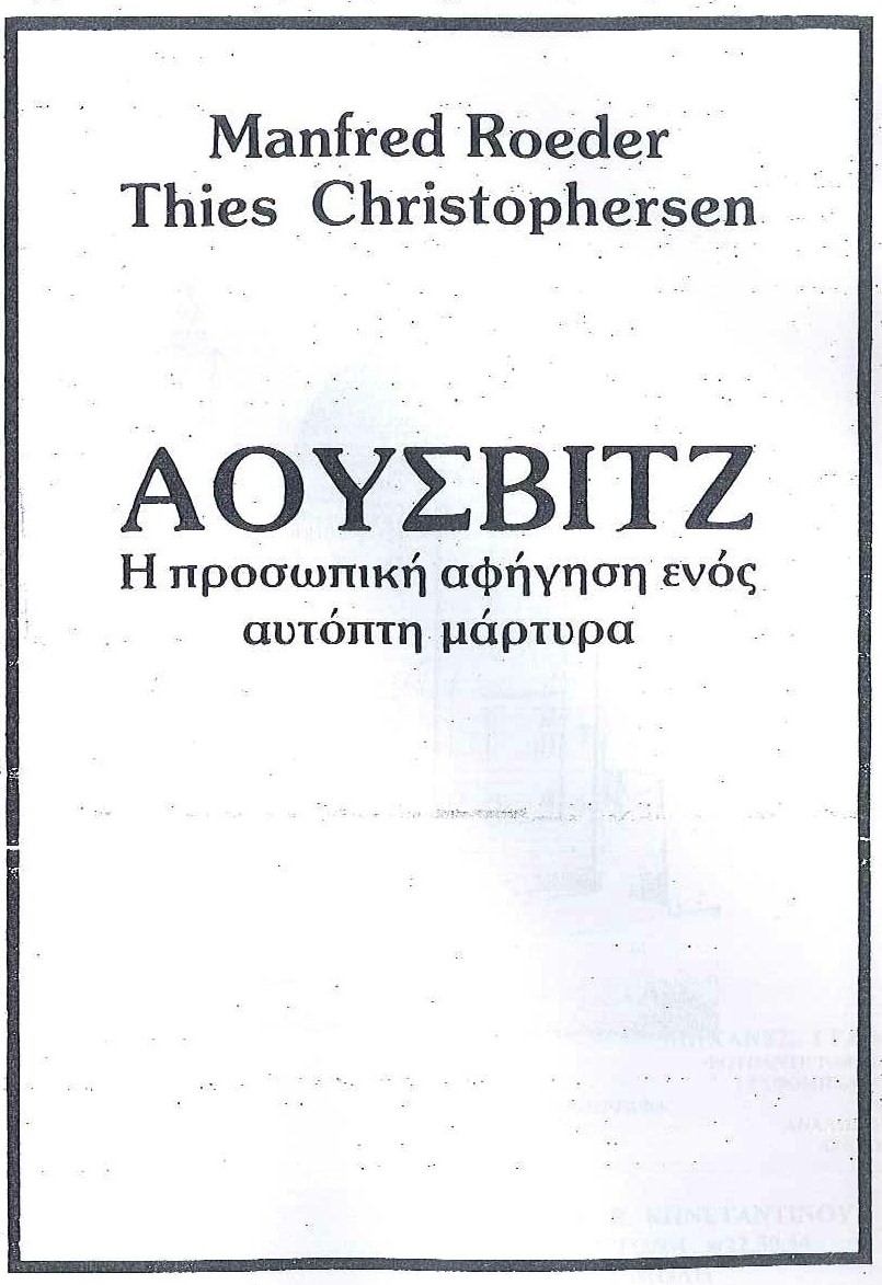 ΑΠΟΚΛΕΙΣΤΙΚΟ: Το βιβλίο που ξεσκέπασε τον μύθο του ολοκαυτώματος «Άουσβιτζ: η προσωπική αφήγηση ενός αυτόπτη μάρτυρα» Manfred Roeder - Thies Christophersen σε μορφή αρχείου .pdf (έκδοση και μετάφραση του Άρη Αρίωνος) - διαδικτυακή αρχειοθέτηση -