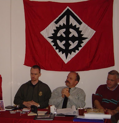 Από την μία βρίσκεται ο Αρχηγός μας, που όλη του η ζωή αποτελεί πρότυπο Εθνικοσοσιαλιστού! Πολεμιστής σε κάθε μετερίζι ( λόγων και πράξεων ) !