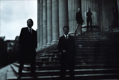 Πολύχρωμη αφίσα υψηλής ποιότητας με μια νεαρή κοπέλα στην πάνω δεξιά άκρη της αφίσας με γυαλιά ηλίου που μπορεί και να στοιχίζουν αρκετές εκατοντάδες ευρώ … και 4 τύποι από κάτω με μια έντονη μελαγχολία στο πρόσωπο τους αλλά και με ραμμένα τα στόματα τους !