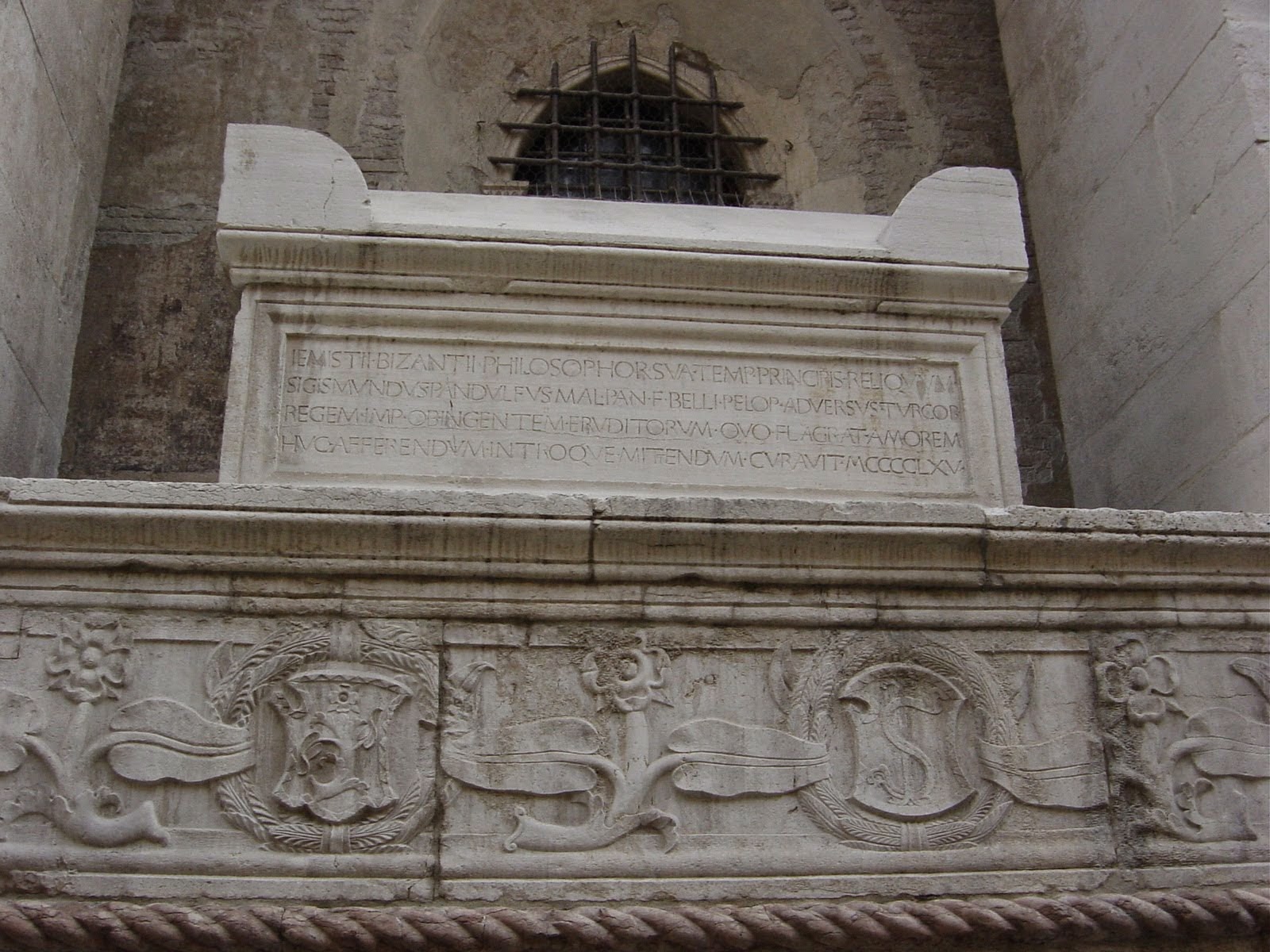 "Το Ρίμινι καμένο και ρημαγμένο το Φορλί, / ποιος θα δει τώρα το μνήμα του Γεμιστού / που τόσο σοφός υπήρξε αν και Έλληνας; / Οι αψίδες γκρεμισμένες και οι τοίχοι φριχτά πυρπολημένοι / γύρω απ' τη μυστηριώδη κλίνη της θεϊκής Ιζόττα... / Μα ποιος είσαι; φώναξα / τ' αφηνιασμένο πάθος μου αντικόβοντας. / Μήπως είσαι ο Σιγισμούνδος; / Μα εκείνος μες στην οργή του πια δεν άκουγε..."